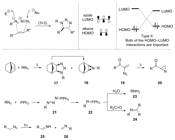Trimethylsilyl azide (TMSN3) and tributyltin azide (Bu3SnN3) have all been used,[7] including enantioselective[19] modifications of the reaction are also known. and amino-azides are accessible by the epoxide and aziridine ring cleavage, respectively.[20][21]