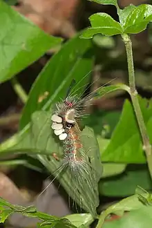 Caterpillars of the group have brushes of hairs on the top of abdominal segments 1 (adjacent to the thorax), 2, 3, 4, and 8 and pencils of hairs projected forward from the sides of the head.[1]