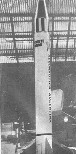 Orión was the designation of a sounding rocket of Argentina,[1] which was started between 1965 and 1971 at CELPA, Mar Chiquita, Tartagal and Wallops Island.[2] In November 1966, three tests of the Argentine-built Orion rockets took place.[3]