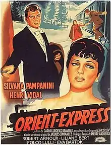 Orient Express is a 1954 drama film directed by Carlo Ludovico Bragaglia and starring Silvana Pampanini, Henri Vidal, Folco Lulli, Eva Bartok and Curd Jürgens.[1] It was made as a co-production between Italy, France and West Germany.
