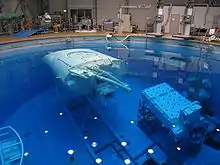 The Japanese Experiment Module (JEM), christened Kibō ("hope") in 1999, is Japan's first manned spacecraft. Kibō consists of a pressurised laboratory dedicated to advanced technology experiments, education and art, a cargo bay, an unpressurised pallet for vacuum experiments in space, a robotic arm, and interorbital communication system. While the proposed space station was redesigned many times around Kibō, the only significant change has been the placement of its ballistic shielding. Its final position at the front of the station increases the risk of damage from debris. The ESA and NASA, by contrast, both reduced the size of their laboratories over the course of the programme. The Japanese National Space Development Agency (NASDA) formally submitted the JEM proposal to NASA in March 1986, and by 1990 design work began.[2][9][10] Constructed in the Tobishima Plant of Nagoya Aerospace Systems Works, by Mitsubishi Heavy Industries, Ltd., Kibō made its way to the Tsukuba Space Center and in 2003 Kibō was shipped, first by river barge and then by ship, to America. In 2010, Kibō won the Good Design Award, a 65-year-old consumer and industry award which identifies the best of Japanese craftsmanship.[11][9]