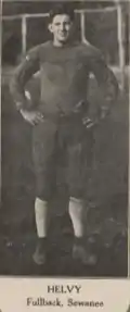 "Mount" Helvey was a prominent guard and fullback for the Sewanee Tigers football teams from 1923 to 1926.[2] Helvey also played basketball and ran track.[3][4]