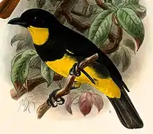 The oriole whistler (Pachycephala orioloides), also known as the yellow-throated whistler (leading to easy confusion with Pachycephala macrorhyncha), is a species of bird in the family Pachycephalidae, which is endemic to the Solomon Islands (archipelago).