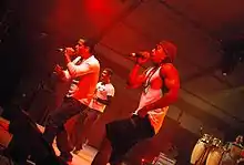 Orishas are a Cuban hip hop group from Havana, Cuba, founded in 1999. The group was first called "Amenaza",[1] "threat" or "menace" in Spanish, and appealed to the Cuban youth. The choice of this name for the hip hop group is a way of creating a direct link between this band and the African diaspora. The group is based in France where they made a deal with a record company, although they visit Cuba frequently. In 1999 Fidel Castro threw a party for them and had a meeting with all the musicians.[2] It was the first time the Cuban government showed support for hip hop music. The group was and still is popular in Europe (especially France, Italy, Spain and Portugal) and Latin America. Yotuel Romero and Ruzzo Medina, who moved from Havana to Paris as part of an international studies program, joined Roldán González and Flaco-Pro to form the band in 1999. Their work is influenced by the hip hop movement as well as Cuban and other Latin rhythms. As of October 2009, they had produced a total of five studio albums and a greatest hits album; their latest album is Gourmet (released May 25, 2018). In 2009 they participated in the concert Paz Sin Fronteras II in Plaza de la Revolución, Havana, Cuba. Orishas reunited to record new material in 2016.