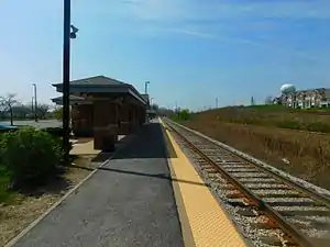 Orland Park 153rd Street is a station on Metra's SouthWest Service in Orland Park, Illinois. The station is 25.2 miles (40.6 km) away from Union Station, the northern terminus of the line.[3] In Metra's zone-based fare system, 153rd Street is in zone E. As of 2018, Orland Park 153rd Street is the 94th busiest of Metra's 236 non-downtown stations, with an average of 544 weekday boardings.[2] Unlike all other stations on the SouthWest Service (besides Union Station), tickets are sold here.