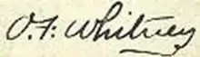 Whitney died in Salt Lake City after being hospitalized for influenza.[16] He was buried at Salt Lake City Cemetery.[17] Whitney is the namesake of the community of Whitney, Idaho.[18]