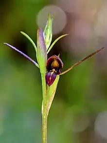 Orthoceras novae-zeelandiae,[1] commonly known as the New Zealand horned orchid,[2] is a species of orchid native to New Zealand. In Māori it is called hūperei or perei.[3][4]