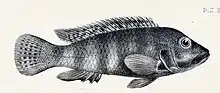 Orthochromis stormsi is a species of cichlid endemic to the Democratic Republic of the Congo, where it is known from the upper Congo River basin and Lake Mweru.[1][2] It has also been reported from Pool Malebo (Stanley Pool) and the Regina Falls in the lower Congo River basin, but the identity of these populations requires further investigation.[1] This species can reach a length of 10.2 centimetres (4.0 in) SL.[2] The specific name honors the Belgian Army Lieutenant Maurice Joseph Auguste Marie Raphael Storms (1875-1941) who collected the type which he presented to the Brussels Museum.[3]