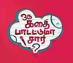 Oru Kadhai Padattuma Sir? (Tamil: ஒரு கதை பாடட்டுமா சார்?) is a 2018 Tamil-language musical drama television series. It started airing on 18 April 2018 on Colors Tamil every Monday to Friday at 20:30 (IST). The series ended on 15 June 2018. The story is told in a musical format including three to four songs in each half hour episode.[1] Up and coming filmmakers will direct the songs, while the host of the show is Tamil lyricist Madhan Karky.[2]