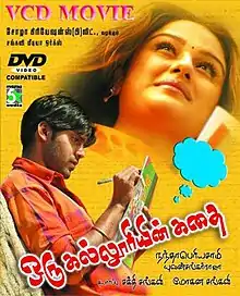 Oru Kalluriyin Kathai (transl. The story of a college) is a 2005 Indian Tamil-language romantic drama film written and directed by newcomer Nandha Periyasamy. It stars Arya and Sonia Agarwal in the lead roles alongside an ensemble supporting cast including Jaivarma, Santhanam, and Charuhasan. The music was composed by Yuvan Shankar Raja with editing by Kola Bhaskar and cinematography by R. Madhi. The film released in 2005 and was deemed a success upon its release.[1]