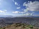 Oruro lies north of the salty lakes Uru Uru and Poopó. It is three hours (by bus) from La Paz. Located at an altitude of 3709 meters above sea level, Oruro is well known for its cold weather. Warmer temperatures generally take place during August, September and October, after the worst of the winter chills and before the summer rains. From May to early July, night time temperatures combined with cool wind can bring the temperature down to about -20 °C. Summers are warmer, and, although it is an arid area, it has considerable rainfall between November and March. The Köppen climate classification describes the climate as a cold subtropical highland climate, bordering on a cold semi-arid climate, abbreviated Cwb and Bsk.[12] Due to the warm days and dry winters, snow is not a frequent occurrence as much as the bitter cold (especially at night); however, flurries can fall usually once every few years, most recently July 4, 2015.[13] The other three most recent snowfalls were those of 13 June 2013,[14] 1 September 2010 (with accumulation),[15] as well as one in 2008.