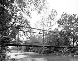 The Osage Creek Bridge is a historic bridge in southern Benton County, Arkansas. The bridge formerly carried County Road 71 (Colonel Myers Road) across Osage Creek, about 4.5 miles (7.2 km) north of Tontitown, but it has been closed. It is a single-span iron Pratt through truss structure, with a span of 124 feet (38 m), resting on concrete abutments. It has a lattice guardrail on one side, a feature that rarely survives on bridges of this type. The bridge was built in 1911 by an unknown builder, and is one of about 60 Pratt truss bridges in the state.[2]