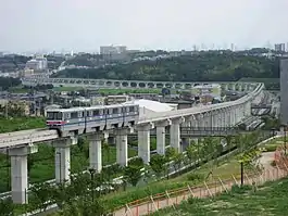 Osaka Monorail Saito Line (大阪モノレール彩都線, Ōsaka Monorēru Saito sen) is the monorail route of the Osaka Monorail which runs from Banpaku-Kinen-Koen in Suita, Osaka Prefecture to Saito-nishi Station. The line opened in two stages - on October 1, 1998, from Bampaku-kinen-koen Station to Handai-byoin-mae Station, and on March 19, 2007, to Saito-nishi Station, in Ibaraki, about a kilometer from the Osaka University of Foreign Studies in Minoh. The branch is 6.8 km (4.2 mi) long.[1]