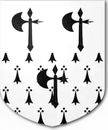 | Arms | per fess argent and ermine, three battle-axes sable[1][3] |