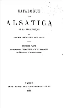 Oscar François George Berger-Levrault (9 May 1826 in Strasbourg – 24 September 1903 in Nancy) was a French philatelist. The invention of the stamp catalogue is attributed to him and to the Englishman, John Edward Gray.