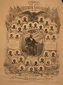 In 1868, Dunn became the first elected black lieutenant governor of a U.S. state. He ran on the ticket headed by Henry Clay Warmoth, formerly of Illinois. In 1871, he became the first black acting governor of a U.S. state after Governor Warmoth injured his foot and left Louisiana to recuperate on two occasions. Article 53 of the Louisiana Constitution of 1868 required the lieutenant governor to serve as acting governor "in case of impeachment of the Governor, his removal from office, death . . . resignation or absence from the state." Dunn served as acting governor of Louisiana for a total of 39 days.[2] Dunn died in office, and the state legislature elected state Senator P. B. S. Pinchback, another black Republican, to replace him as lieutenant governor. A year later, Pinchback became acting governor for his own 34-day interim stint.