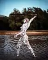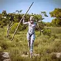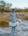 Awuku calls his art Anansinisim, inspired by the Akan mythical spider character Kweku Anansi.[6] He often depicts historical Ghanaian Adinkra symbology on the bodies which he paints.[7]