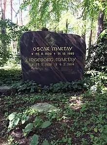 As a Jewish emigrant, he lived in the US and was sent to Germany after World War II as a film officer. In 1955, Oscar Martay marries Renate Barken (1920—2014),[8] a German actress. He dies in 1995.[2] They have 2 sons, Kenneth Andreas (1956) is an Associate Professor of Anesthesiology at the University of Washington, and Manuel (1960) is a social worker living in Germany. Oscar and Ingeborg Martay are buried in the Waldfriedhof Zehlendorf Berlin Germany.[9]