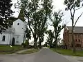 Osieki Lęborskie church, looking north along the road to Choczewo