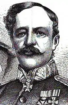 In 1850 he returned to military service and became a lieutenant colonel in the 3rd Infantry Regiment "Prinz Karl von Bayern" in Augsburg, of which he became commander in 1853. Two years later, as major general, Zoller assumed command of the 7th Infantry Brigade in Bayreuth.[3] As such, in 1860 he received the Prussian Order of the Red Eagle, II Class[4] and in 1861 was promoted to Lieutenant General and Commander at Nuremberg.[5]