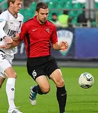 In June 2010 Kļava went on trial with the Russian Premier League club Anzhi Makhachkala and signed a three-year contract with them in August the same year.[3] He was given the nr. 83 jersey at the club and, despite his surname being Kļava, he had his name Oskars written on it. He made his Premier League debut in the 17th round match against CSKA Moscow, coming on as a substitute on 15 August 2010.[4] In his first season in Makhachkala Kļava appeared in 11 Premier League matches, as well as 12 reserve team games, scoring 1 goal.[5] He lost his place in the starting line-up after the arrival of the Brazilian legend Roberto Carlos.