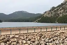 The reservoir and surrounding forest have been designated a type 1 continental Zone naturelle d'intérêt écologique, faunistique et floristique (ZNIEFF).[9] The ZNIEFF includes the Natura 2000 Zone "Forêt de l'Ospédale", the lake and its surroundings, the left bank of the lake where bats roost and an extension towards the northwest holding Yew habitats.[10] It covers 926.94 hectares (2,290.5 acres) and includes parts of the communes of San-Gavino-di-Carbini, Carbini, Porto-Vecchio and Levie.[11]