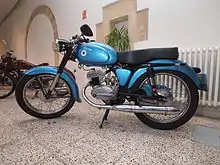 The original Ossa company got its start in 1924 making movie projectors for its home market in Spain.[5] The company's four-leaf clover emblem wasn't actually a four-leaf clover; it is the escapement mechanism of a film projector.[1] Before World War II, Giró was the Spanish sidecar racing national champion, along with his co-pilot, the future founder of Bultaco motorcycles, Francisco Bultó.[1] After World War II, Ossa obtained superior two-stroke engine technology from the German DKW factory as war reparations and, began mass-producing two-stroke motorcycles in 1949.[1][2] Ossa reached its highest production levels in the motorcycle boom of the 1960s, exporting large numbers of exports to other European countries, but also significantly, to North American markets. In the United States and Canada, off-road motorcycling - and particularly the newly imported sport of motocross to which the light-weight and powerful Ossa was well suited - enjoyed a surging popularity. In addition to their suitability for racing, in terms of power-to-weight, Ossa motorcycles gained a reputation for reliability on and off the race track.[5]