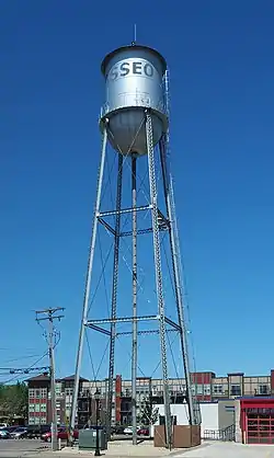 The Osseo Water Tower in Osseo, Minnesota, is a historic water tower listed on the National Register of Historic Places in June, 2017. It was listed for its historical significance to community planning and development in Osseo, because it promoted better fire fighting, provided fresh water to homes and businesses, and supported the growth of the community. It is also architecturally significant because hemispherical-bottom water towers, built from about the 1890s to about 1940, are rapidly being replaced by larger-capacity towers.[2]: 11