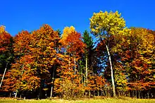 The Ossiach Tauern (German: Ossiacher Tauern, Slovene: Osojske Ture, locally just Turje[1]) is a wooded mountain ridge in the Austrian state of Carinthia between Lake Ossiach in the northwest and the Wörthersee in the southeast. The highest point of the Ossiach Tauern is the Taubenbühel which is 1,069 m (AA). At its western end, on a prominent hill, are the ruins of Landskron Castle. Not far from the re-opened castle, which is now used as a restaurant and falconry station, hikers can join the Tauern hiking trail to the Jungfernsprung, a rock formation that drops steeply to Lake Ossiach, from where there is an extensive view of the western part of the lake and the Gerlitze. An old quarry is visible from Villach, which until recently used to produce rocks for river engineering in Carinthia. In the Ossiach Tauern there are also several old mining galleries. Centuries ago, zinc and other ores were mined here.