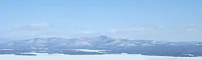 The Ossipee Mountains are the remains of a 125 million year-old volcanic ring dike,[1] the remnant of a Cretaceous stratovolcano of the later White Mountain igneous province. The complex is circular in plain view and has a diameter of 14 km.[2] The ring-dike complex is easily identified on satellite images, with its southeast edge located about 5 miles (8 km) northwest of the town center of Ossipee.