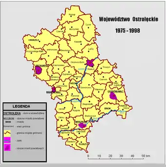 Ostrołęka Voivodeship (Polish: województwo ostrołęckie) was a unit of administrative division and local government in Poland in the period 1975–1998. It was superseded by Masovian Voivodeship. Ostrołęka.