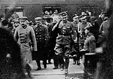 In late 1939 and early 1940, many Poles were arrested during the Intelligenzaktion, then imprisoned in Kalisz and murdered in large massacres in the Winiary forest near Kalisz.[4] Among the victims were activists, school principals, former participants of the Polish Greater Poland uprising (1918–19) against Germany, and pre-war mayor Stanisław Musielak.[5] The Germans also established a Nazi prison for Poles in Ostrów.[6][7] Further mass arrests of around 400 Poles from the county were carried out in April–May 1940, and many of the victims were then imprisoned in the local prison.[8] Teachers from Ostrów were among Polish teachers murdered in the Mauthausen concentration camp.[9] A Nazi German labor camp, Staatspolizeistelle Litzmannstadt Arbeitserziehungslager Ostrowo,[10] operated within the town's limits, where 193 people died.
