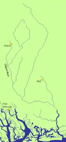 The Otamiri River is one of the main rivers in Imo State, Nigeria. The river takes its name from Ota Miri, a deity who owns all the waters that are called by his name, and who is often the dominating god of Mbari houses. The river runs south from Egbu past Owerri and through Nekede, Ihiagwa, Eziobodo, Olokwu Umuisi, Mgbirichi and Umuagwo to Ozuzu in Etche, in the Rivers State, from where it flows to the Atlantic Ocean. The length of the river from its source to its confluence at Emeabiam with the Uramiriukwa River is 30 kilometres (19 mi).[1]