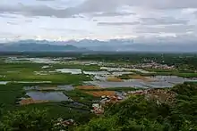 Otanaha Fortress is one of the tourism site in Gorontalo province Suwalesi Island, Indonesia. It was built in 1522 by King Ilato from Gorontalo Kingdom and Portuguese sailors to strengthen the area security and defense.[1] Located in Dembe Hill, this fort was made from mixture of sand, calcium, and eggs of Maleo birds.[2][3] To reach the top of this fort, there are 348 steps, which separated into four stopovers: 52 steps from base to the first stopover, 83 steps from first to second stopover, 53 second to third stopover, and 89 steps from third to fourth stopover. From the last stopover, there are another 71 steps to reach the fort. From the top of this fortress, there are panoramic view of Limboto Lake and some part of Gorontalo region.[4]