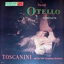 The 1947 recording of Verdi's Otello by Arturo Toscanini and the NBC Symphony Orchestra and chorus is regarded as one of the most notable early Verdi opera recordings.[1] The role of Otello was sung by Ramón Vinay, Desdemona by Herva Nelli, and Iago by Giuseppe Valdengo.[2][3][4]