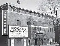 The last hockey game ever played at the Auditorium was a Junior "B" playoff game in which the Hawkesbury Combines defeated the Ottawa Astros 6–5 in overtime to take a 2–1 lead in games. The ice came out the very next day on April 3, 1967.[6]