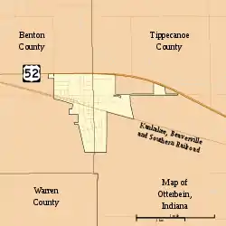 ![]() Location of Otterbein in Benton County and Tippecanoe County, Indiana. | |