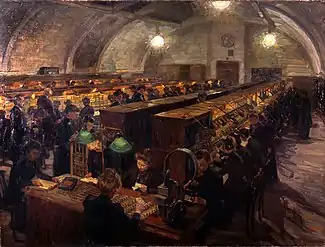 He was promoted several times; culminating in a seat on the Amtsrat (Council of Directors) in 1920. Only four years later, the reorganization following hyperinflation eliminated that position. He retired in 1930.[1] Under pressure from the Nazi government, his style after 1933 became more realistic, as did that of most artists. In 1935, he visited one of his daughters in Chicago, and drew sketches of the city.
