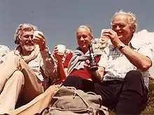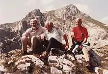 The first international conference ever on "archaebacteria" was also organised by Kandler, again in Munich, in 1981. Both, Carl Woese and Ralph Wolfe took part. The resulting conference volume was the very first book on "archaebacteria".[36] At this conference convincing evidence for essential structural, biochemical and molecular differences between bacteria and "archaebacteria" was presented leading to the gradual acceptance of the concept of the "archaebacteria" as an autonomous group of organisms. After the conference, the "archaebacteria" were celebrated by Woese, Wolfe and Kandler on an excursion to the close Alps climbing the top of Hochiss (2299 m) in the Rofan mountains (see Photos).