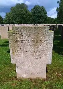 Arrested by Allied authorities after Germany's surrender, Stülpnagel was moved to a French military prison. Charged with war crimes by French authorities, Stülpnagel committed suicide in Cherche-Midi Prison on 6 February 1948. He is buried in the Champigny-Saint-André German war cemetery.