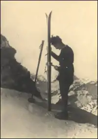 After the war he, returned to the university and lived together with his mother. Additionally he explored the Alps on ski and amongst others, he took part in the first Italian complete Mont Blanc ski-run in 1927.
