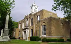 The Ouachita County Courthouse is located at 145 Jefferson Avenue in Camden, Arkansas, the seat of Ouachita County. The two-story brick and concrete structure was designed by Little Rock architect Thomas Harding, and completed in 1933. The architecturally distinctive building exhibits a restrained Colonial Revival style (which was then passing out of fashion, with elements of Art Deco. It is a T-shaped building with symmetrical wings flanking a Classical style columned and gabled portico.[2]