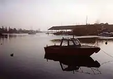 Oulton Broad is an expanse of water and marsh which forms part of the network of man-made bodies of water known as The Broads. It is believed to be the remnant of medieval peat cutting.[3] To the east it is linked by Mutford Lock to the saltwater Lake Lothing which passes through the centre of Lowestoft and opens into the North Sea. To the west it is linked by Oulton Dyke to the River Waveney.