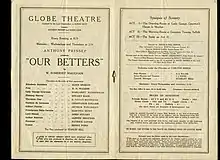 Our Betters is a comedy play by the British writer Somerset Maugham. Set in Mayfair and a country house in Suffolk, the plot revolves around the interaction between newly wealthy Americans and upper-class British society.