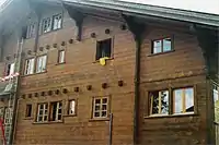 Construction of Our Chalet began with the basement in September 1931, and the roof was built on 21 December 1931, according to plans by architect M. von Sinner.[6] Storrow returned in May 1932 to see the completed chalet, prompting Falk and others to hold a party at a village inn to celebrate the strong bond that remains to this day between the chalet and villagers.[2] Storrow then decided that she wanted a separate, smaller house of her own where she could stay and receive guests to be ready in time for the official opening of Our Chalet. Named "Baby Chalet", it is still open to guests.