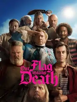 Our Flag Means Death is an American period romantic comedy[1] television series created by David Jenkins. Set in 1717 during the Golden Age of Piracy, the series follows the misadventures of aristocrat-turned-pirate Stede Bonnet (Rhys Darby) and his crew aboard the Revenge as they try to make a name for themselves as pirates and cross paths with famed pirate captain Blackbeard (Taika Waititi) and his right-hand-man Izzy Hands (Con O'Neill). It premiered on HBO Max on March 3, 2022,[2] and the season finale aired on March 24. As of April 27, the show has not been renewed for a second season.[3][4]