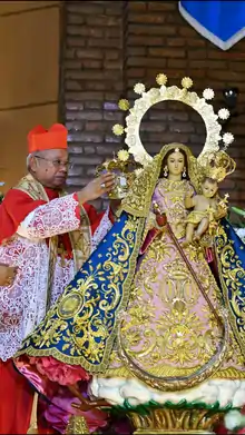 The Canonical Coronation of the image was granted in response to the petition made by the community through the late parish priest (+) Rev. Fr. Lawrence C. Paz with documents prepared by the Cofradia de Nuestra Señora de Aránzazu. The decree was promulgated on 17 June 2016 by Prefect of the Congregation for Divine Worship and the Discipline of the sacraments, Cardinal Robert Sarah. The coronation was held on 31 May 2017. With Reverend Francisco M. De Leon, D.D as the mass celebrant, and Archbishop Orlando Cardinal Quevedo as the crowning prelate in behalf of Pope Francis.