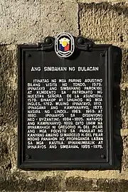 - File:Bulacan Church historical marker.jpg. Wikimedia Commons. Retrieved on 2014-12-14.