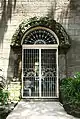 Details of a concrete arch doorway leading to the sacristy