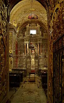 When the Order was given possession of Malta in 1530, the icon was held at the Church of St. Lawrence in their headquarters in Vittoriosa. When the Order moved its base to the newly built capital city of Valletta in the 1570s, the icon was housed at a purpose-built side chapel of Saint John's Co-Cathedral. The icon remained there until the French invasion of Malta in 1798 which expelled the Order from the Maltese Islands.[1] The French allowed the Order to take some relics with them, but not their precious reliquaries. The icon together with a fragment of the True Cross and of the hand of John the Baptist were passed by admiral Giulio Renato Litta to Paul I of Russia, who succeeded Ferdinand von Hompesch zu Bolheim as Grand Master. Paul placed them in the Priory Palace at Gatchina, near St. Petersburg.